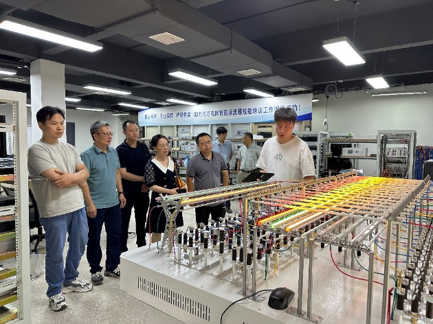 交流结束后,学院教师参观了凯默电气的研发实验室、智能录波器培训基地及电网微动模平台。在参观过程中,研发工程师详细介绍了电网微动模平台的组成、功能、应用场景,并模拟演示了电网故障推演过程。通过实地调研观摩,双方就就如何进一步发挥平台作用、促进学生实践能力提升提出了宝贵意见。